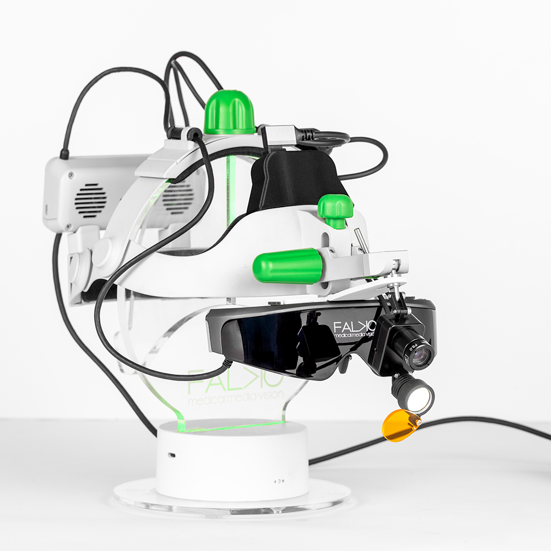 Il visore con obiettivi intercambiabili da 2.5x e 4x è progettato per garantire nitidezza e comfort anche nelle sessioni più lunghe. La struttura ergonomica assicura una postura corretta e riduce l’affaticamento, mentre l’illuminazione integrata e la profondità di campo costante rendono più fluide le fasi operative. La possibilità di alternare progressivamente la visione digitale a quella diretta semplifica l’apprendimento e accelera l’adozione nella pratica quotidiana. Il visore è plug and play, non richiede software o PC ed è compatibile anche con l’uso di occhiali da vista.