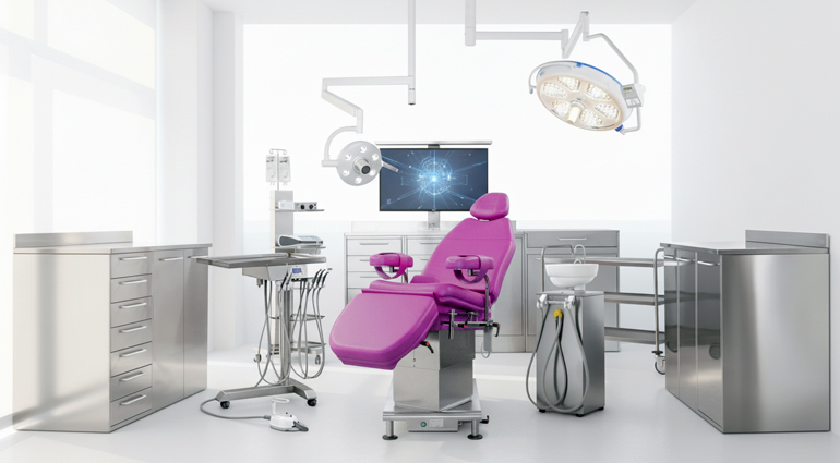 Disponibile in acciaio inox medicale o in finitura bianca verniciata, unisce design italiano e tecnologia medica professionale, valorizzando lo studio e offrendo un comfort superiore al team e al paziente.